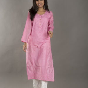 Crafted with finest georgette material, long kurti with jhaal work and resham thread on it, as its comfortable silhouette with soft and skin friendly embroidery. Its perfect for occasion wear and can pair with pants or plazzo.
